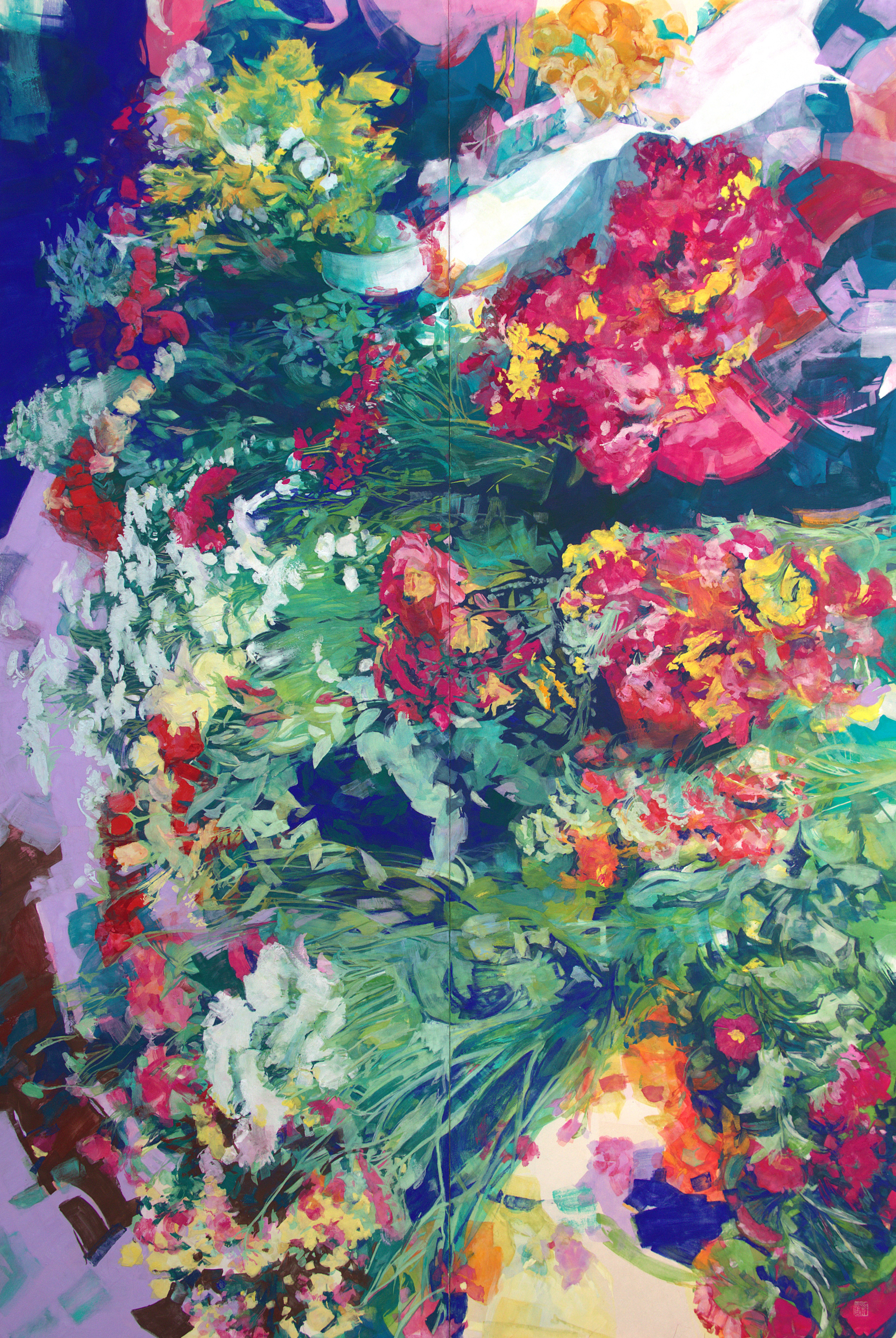 岩絵具、水干絵具・雲肌麻紙 (2枚パネル)